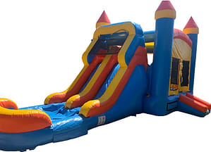 Bright, bold, and packed with action, Multi-Colored Combo – Dual Lane Slide brings double the excitement to any party. With a spacious bounce area, interactive pop-ups, basketball goal, and a 9-foot dual lane slide, this combo keeps kids moving, competing, and smiling nonstop.